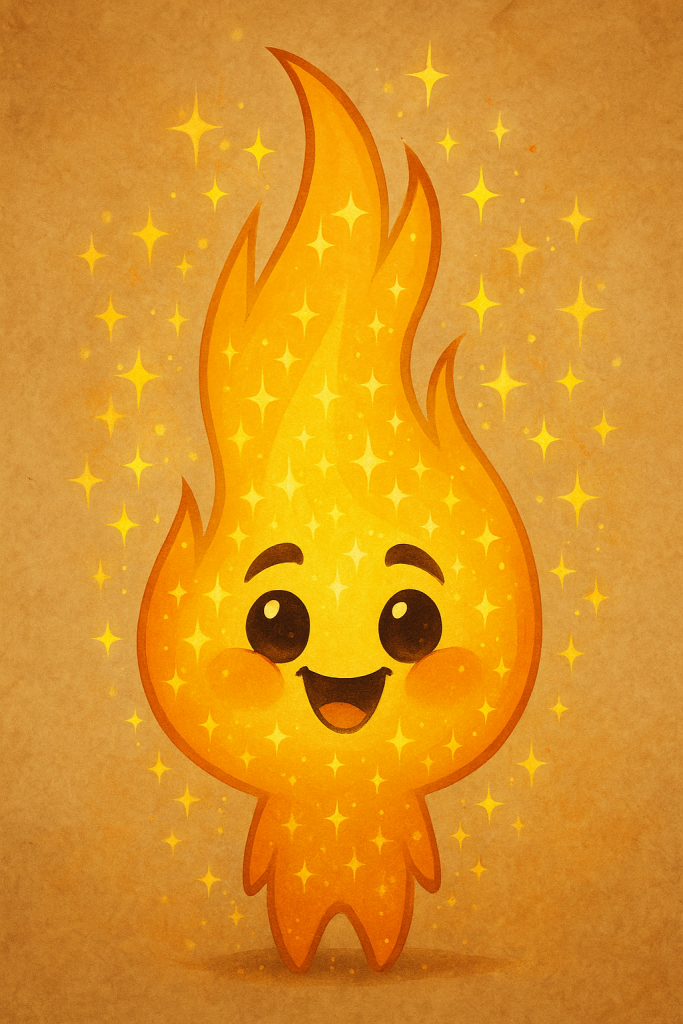 His flame dances when he’s excited, and his laughter sounds like tiny bells warming in the air.